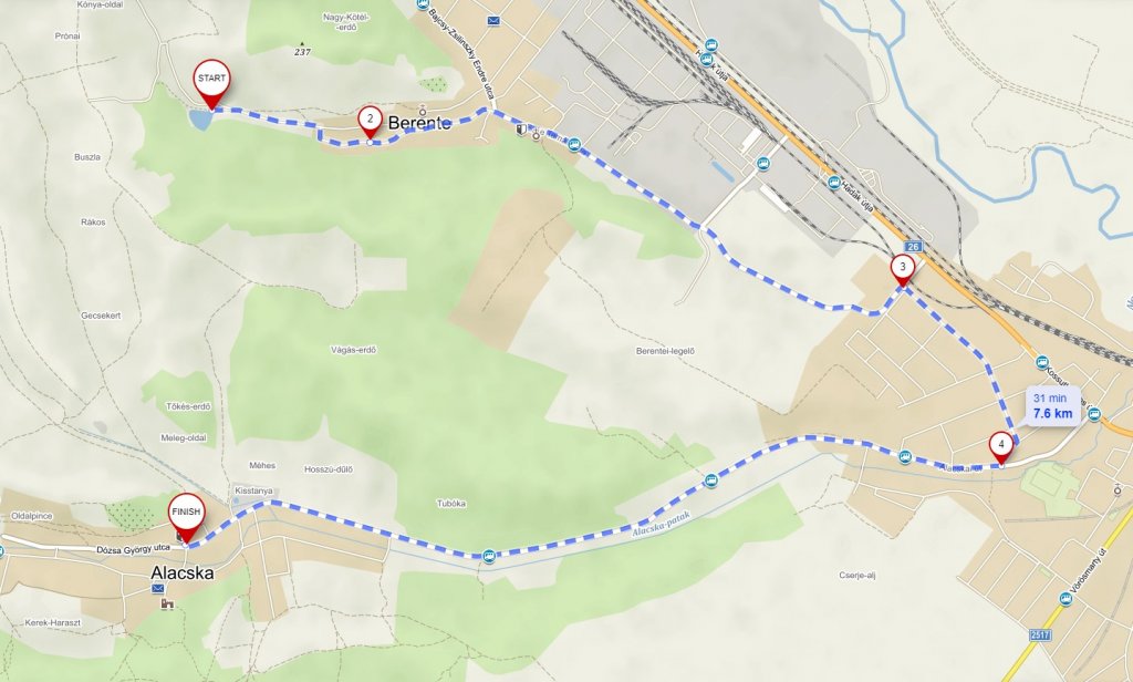 A 2006-ban átadott Berentei horgásztó, nemcsak a horgászat szerelmeseinek nyújt kiapcsolódást, hanem a környékre látógató kirándulóknak és túrázóknak is ideális célpont. A Berentei Kondipark felé indulunk el, majd a József Attila útról jobbra letérünk az Ady Endre utcára, amelyet ismét a József Attila út keresztez és a kereszteződésnél az Esze Tamás utcán kerékpározunk tovább. Sajószentpéterre beérve az Erőmű utcán haladunk tovább, majd kitekerünk az Alacskai útra, amely bevisz minket a község egy szépen rendezett parkjába, ahol lehetőségünk van felfrissülni. |