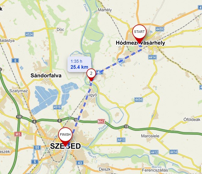 Hódmezővásárhelytől Szegedre jó minőségű kerékpárúton fogunk tekerni, a 47-es út mentén. Ez az útvonal kevésbé látványos, de gyorsan járható. Hódmezővásárhelyt elhagyva egy ideig a vasúti sínek mentén haladunk, majd átkelünk a Tiszán az Algyői közúti Tisza-hídon, aztán eltekerünk Szegedig, ahol a József Attila sugárúton folytatjuk utunkat a belvárosba vagy a Dóm tér irányába. A túra ellentétes irányban is teljesíthető, aki oda-vissza megteszi, kétszer jelölje be teljesítettnek. |