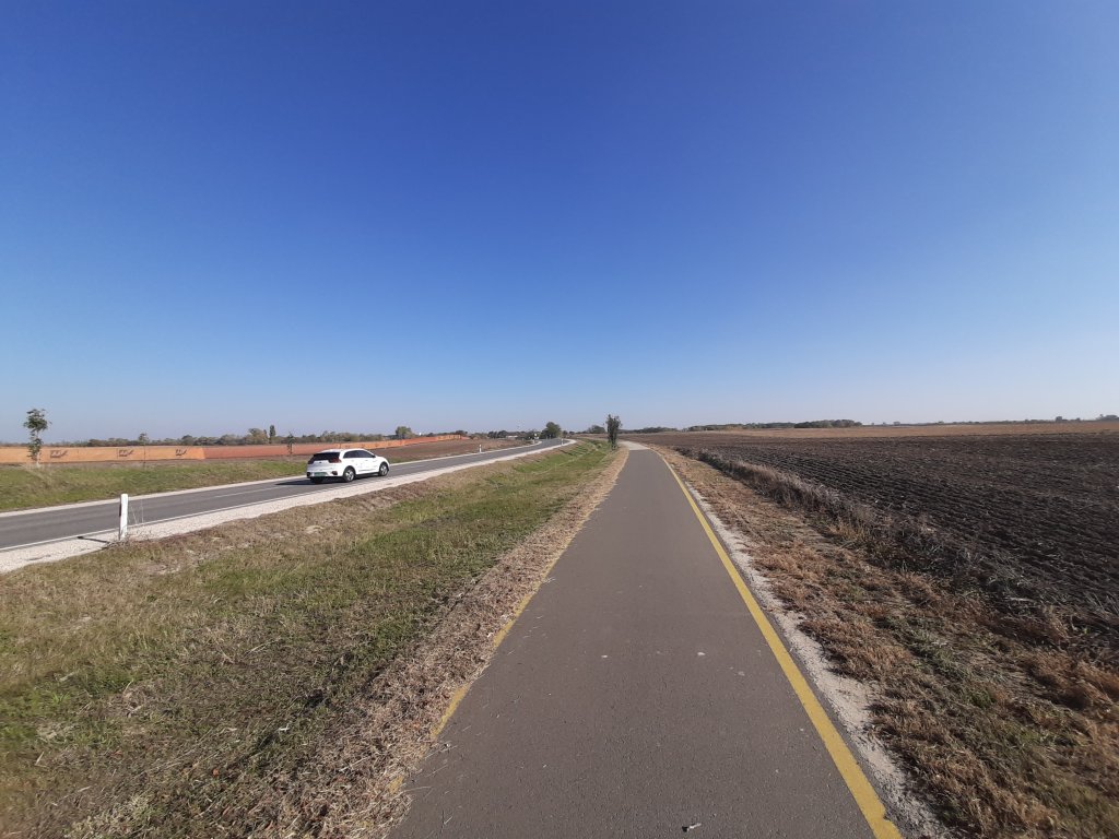 A Felsőszentiváni Szélmalomtól tekerünk Bajára jó minőségű kerékpárúton., ami az 55-s utat követi.